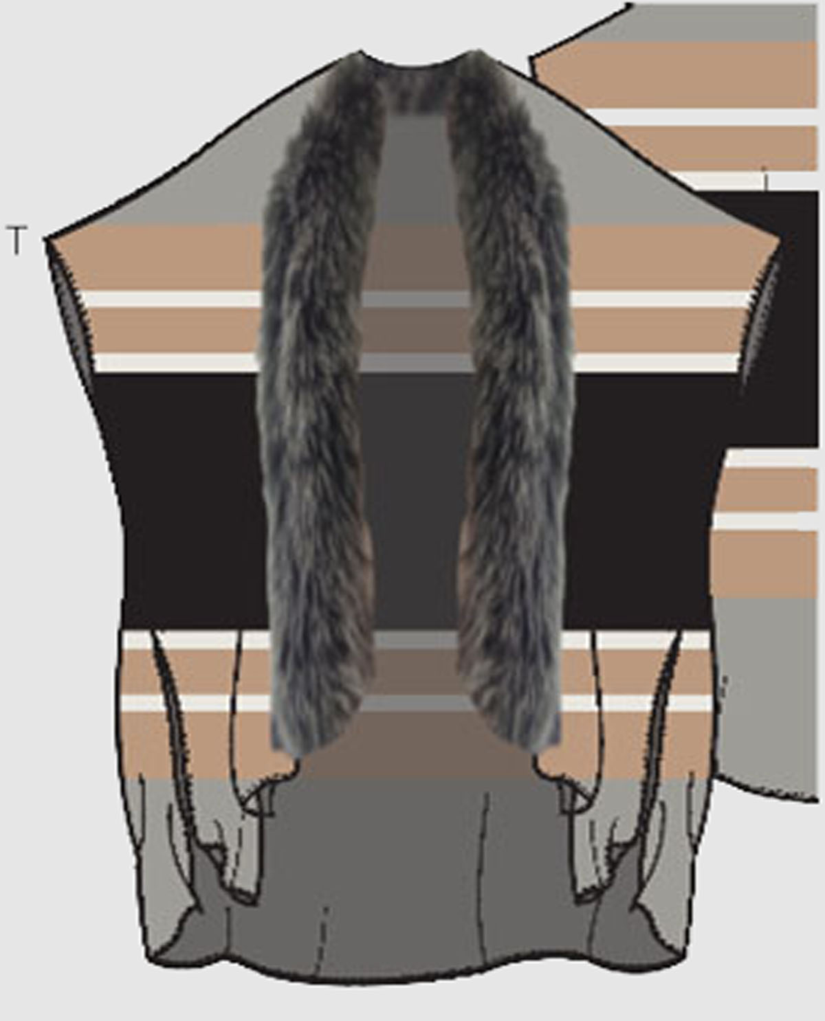 Style: VS 1002 STRIPE PONCO / CAPE WITH FUR TRIM YARN: 30% WOOL 70% ACRYLIC