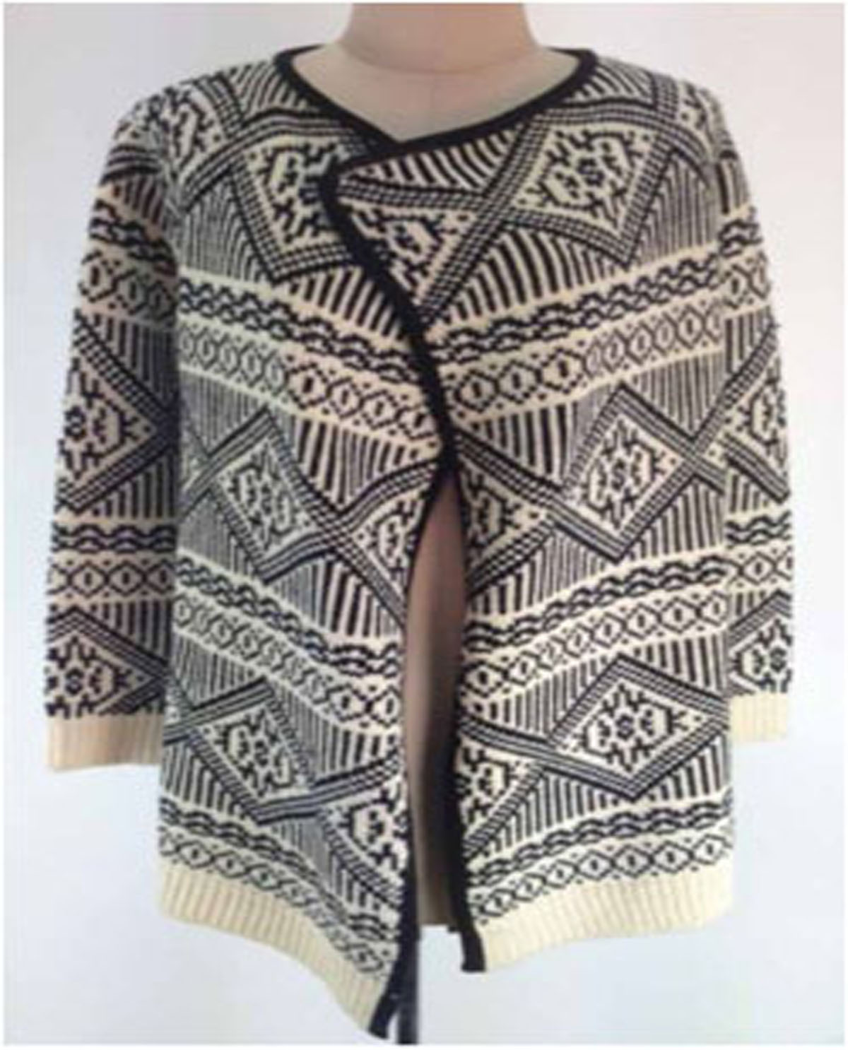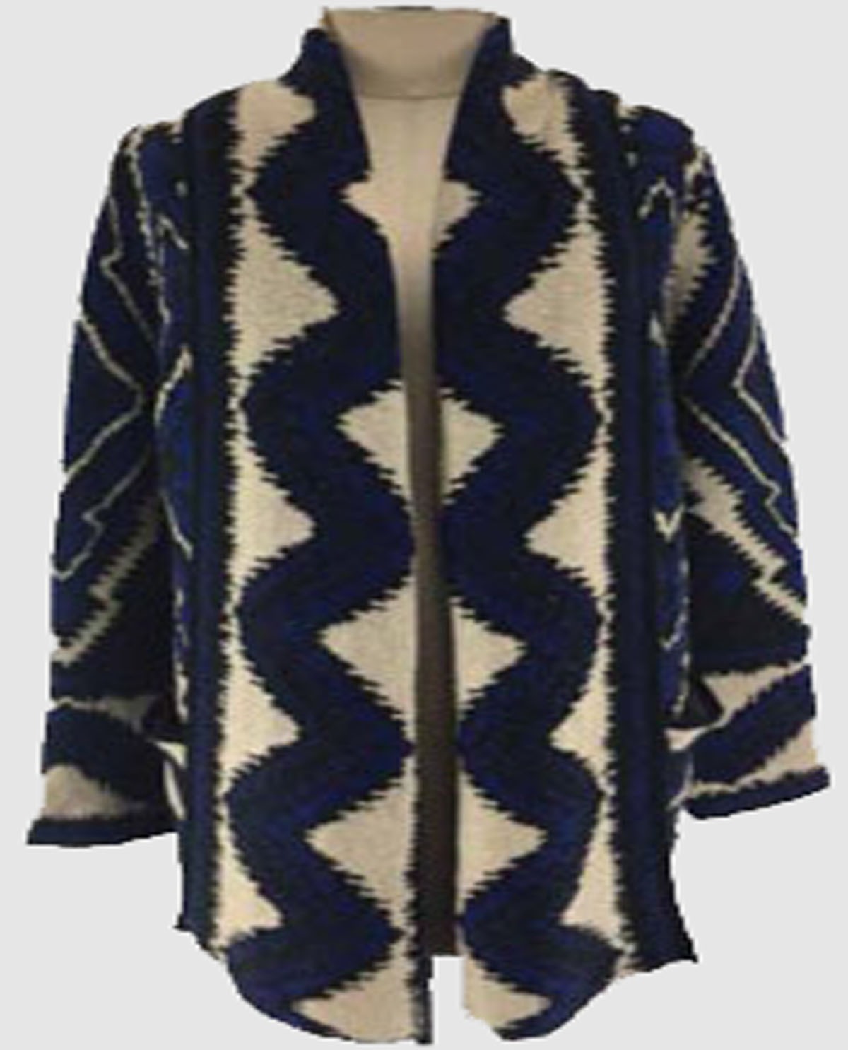 Style: VS 1011 OPEN FRONT JACQUARD CARDIGAN YARN: 30% WOOL 70% ACRYLIC