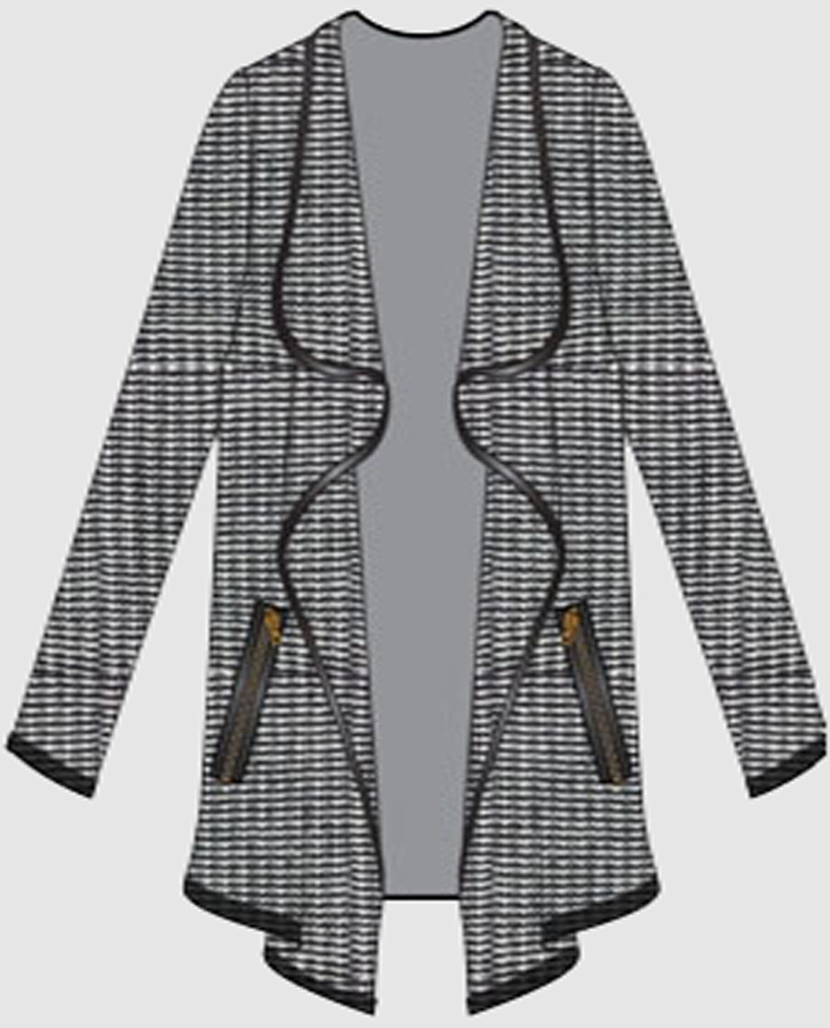Style: VS 1010 DRAPE OPEN CARDIGAN WITH LEATHER LOOK TRIM YARN: 30% WOOL 70% ACRYLIC,