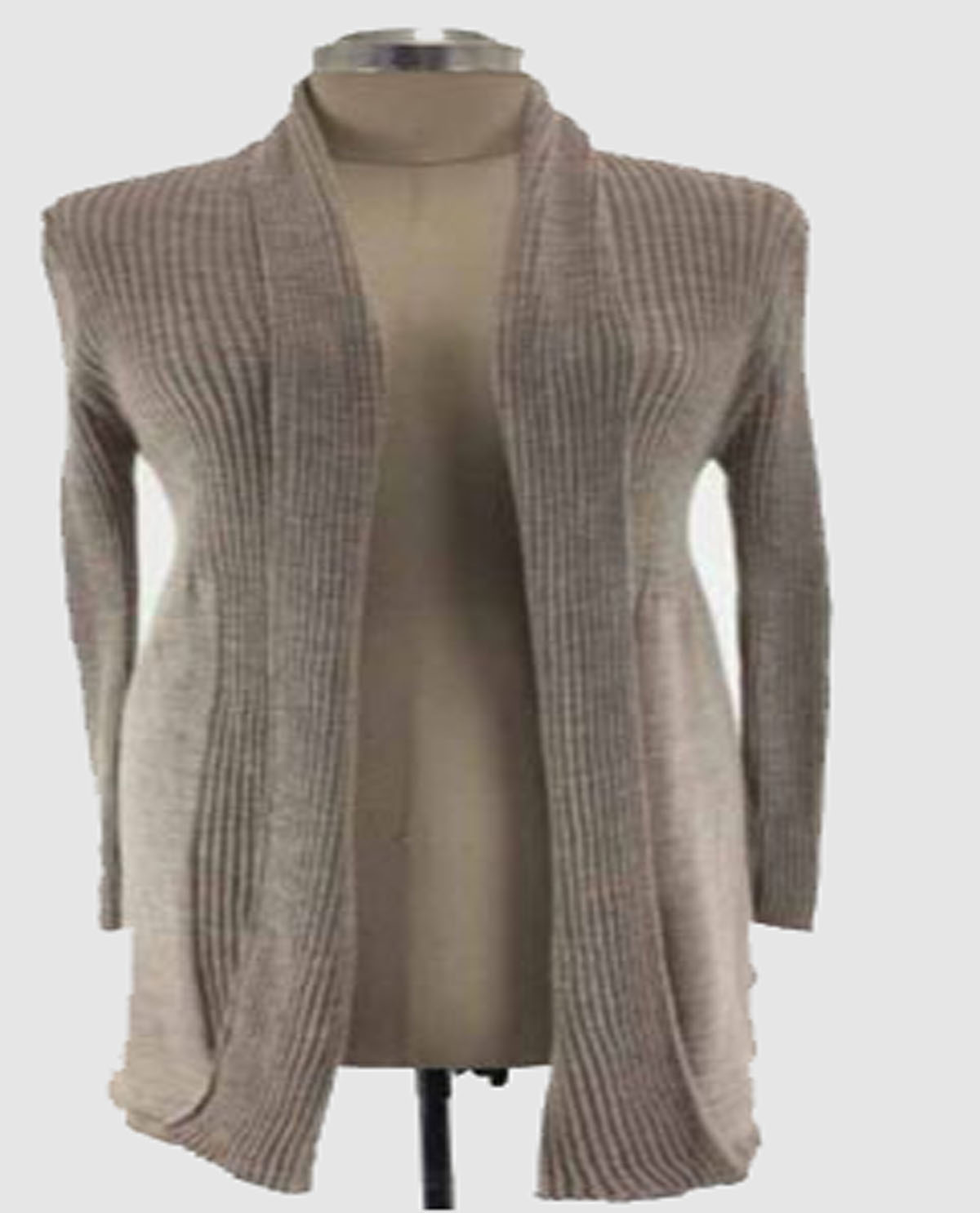 Style: VS 1006 OPEN FRONT CHUCKY KNIT CARDIGAN YARN: 30% WOOL 70% ACRYLIC NYLON(imported yarn)