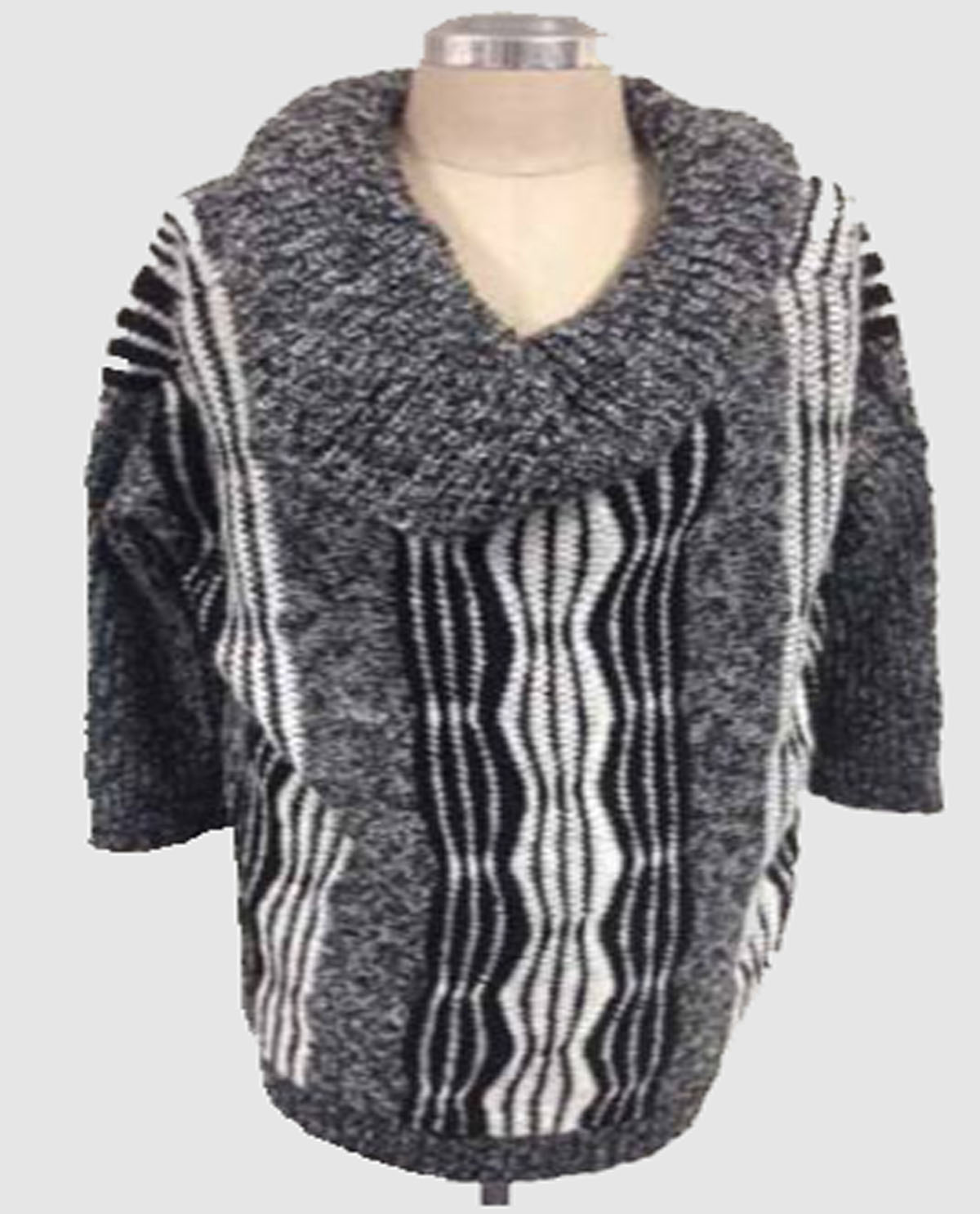 Style: VS 1007 TRIPE PONCO/CAPE WITH FUR TRIM YARN: 30% WOOL 70% ACRYLIC NYLON (imported yarn)